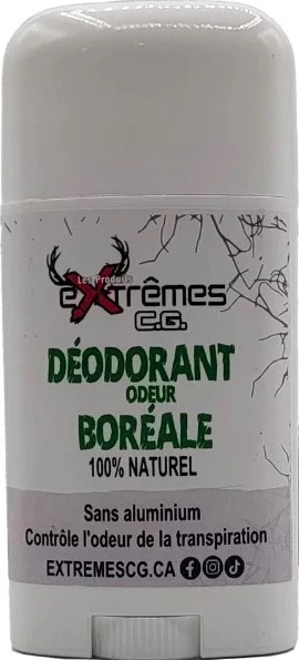 Déodorant en 60 gr avec odeur boréale pour un contrôle extrême des odeurs en forêt.