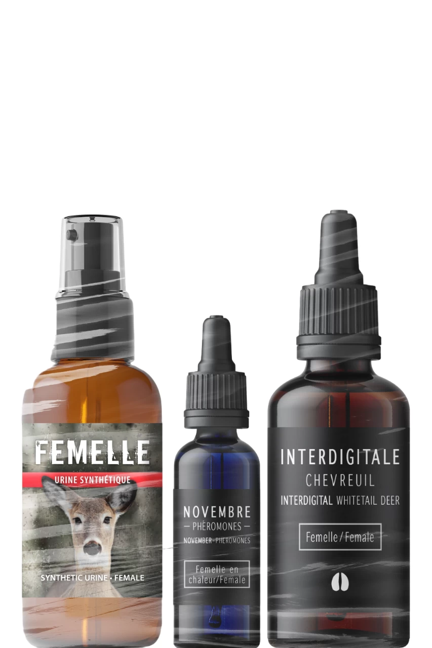 Ensemble Novembre dâInstinct Sauvage regroupe trois produits attractifs très important pour la chasse au chevreuil.